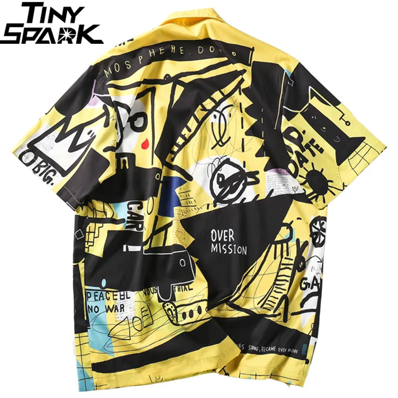 2019 Hawaiian Shirt Graffiti Mens Hip Hop Shirts Streetwear Harajuku Beach Shirt Summer Casual Shir